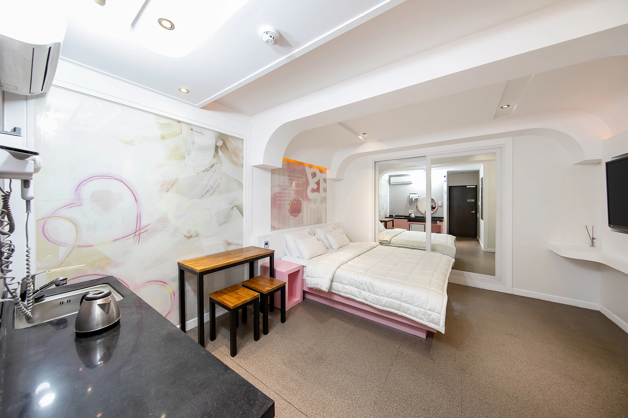 - 집기품목 : 타월, 커피포트, 침대방, 욕조, 와이파이, 에어컨, 세면도구, 샴푸, 비데, 바디워시, 린스, 드라이기, 냉장고, TV, 욕실용품