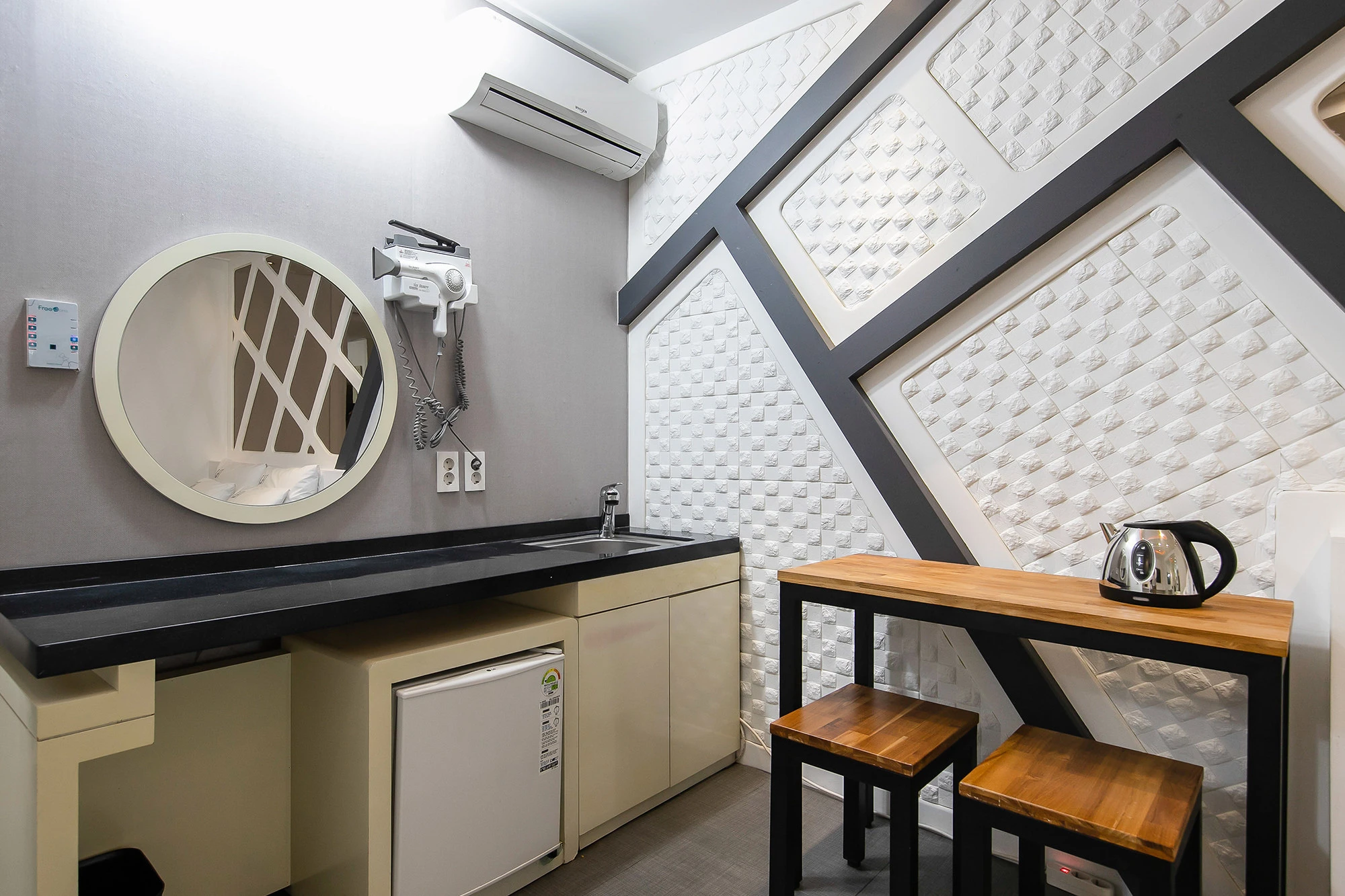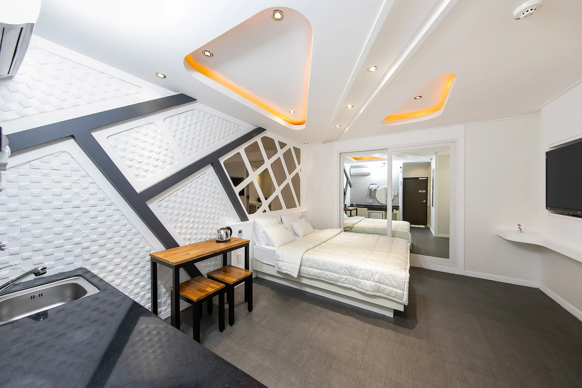 - 집기품목 : 타월, 커피포트, 침대방, 욕조, 와이파이, 에어컨, 세면도구, 샴푸, 비데, 바디워시, 린스, 드라이기, 냉장고, TV, 욕실용품